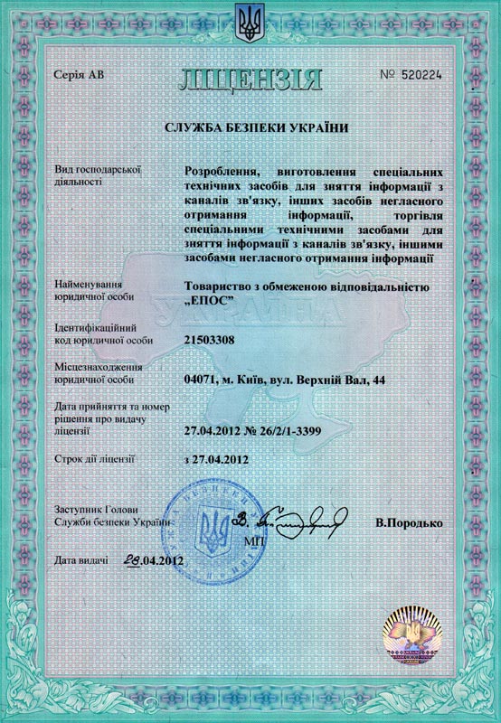 Ліцензія Служби безпеки України