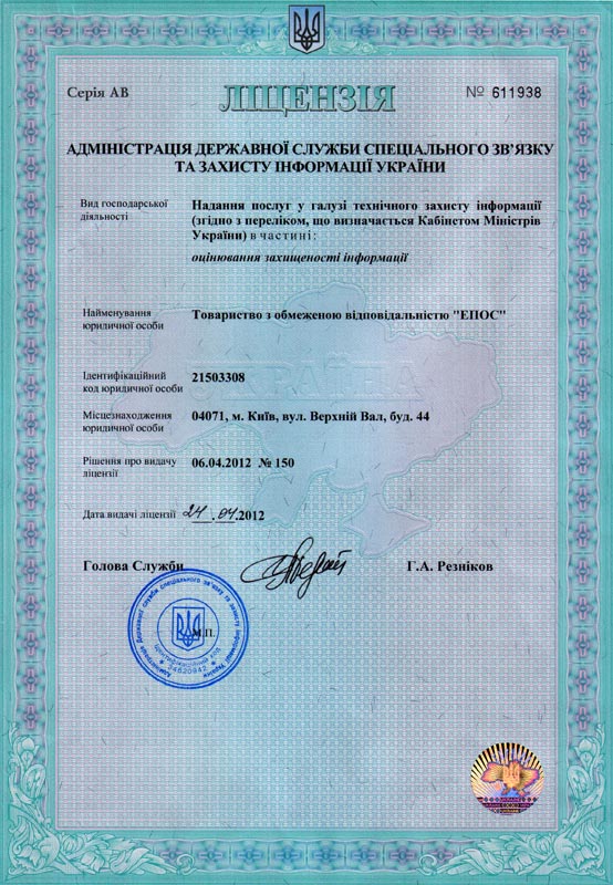 Ліцензія Адміністрації Державної служби спеціального зв’язку та захисту інформації України